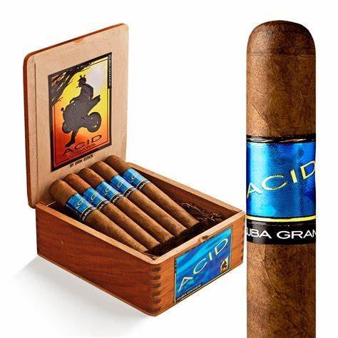 The ACID Kuba Grande features premium Dominican long-filler tobaccos carefully blended for smoothness, richness, and complexity. The wrapper is selected for its quality and even burn, enhancing the infusion of botanicals and essential oils that give the cigar its signature ACID character.