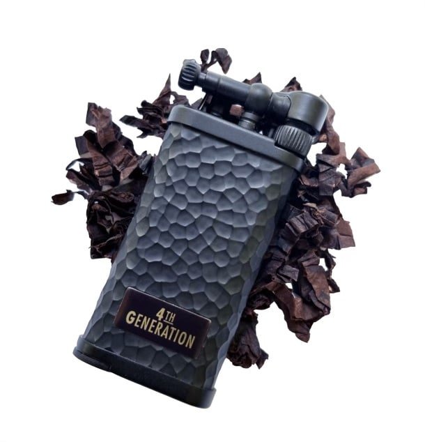 Japan’s IM Corona has added the new Hammer Tone design to its iconic soft flame pipe lighter with removable tamper, this one is in a unique Perique (Black) Hammer Tone finish.